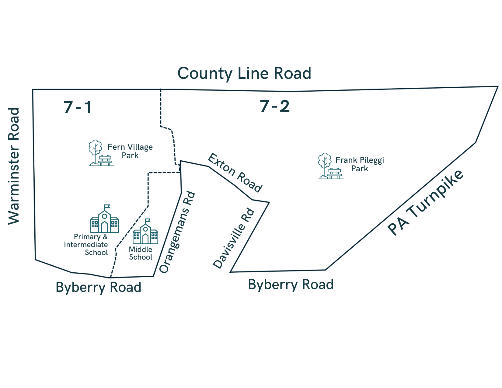 Check the map to confirm that you're located in Ward 7 of Upper Moreland. To view all township wards, you can also refer to the full Upper Moreland ward map.